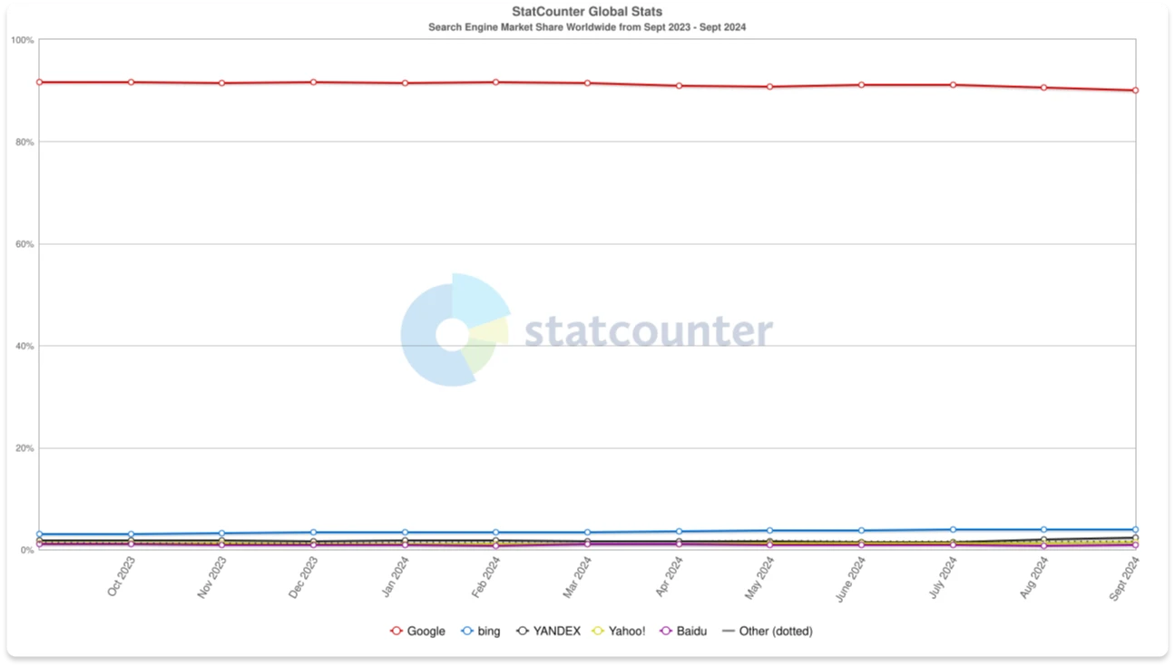 글로벌 검색의 90% 이상은 Google에서 이뤄집니다. 나머지 10%는 Bing, Yandex, Yahoo 등에서 이뤄지죠. 물론, 한국을 기준으로 본다면 Naver가 존재합니다. 그럼에도 국내 검색의 60%는 Google을 통해 이뤄집니다.