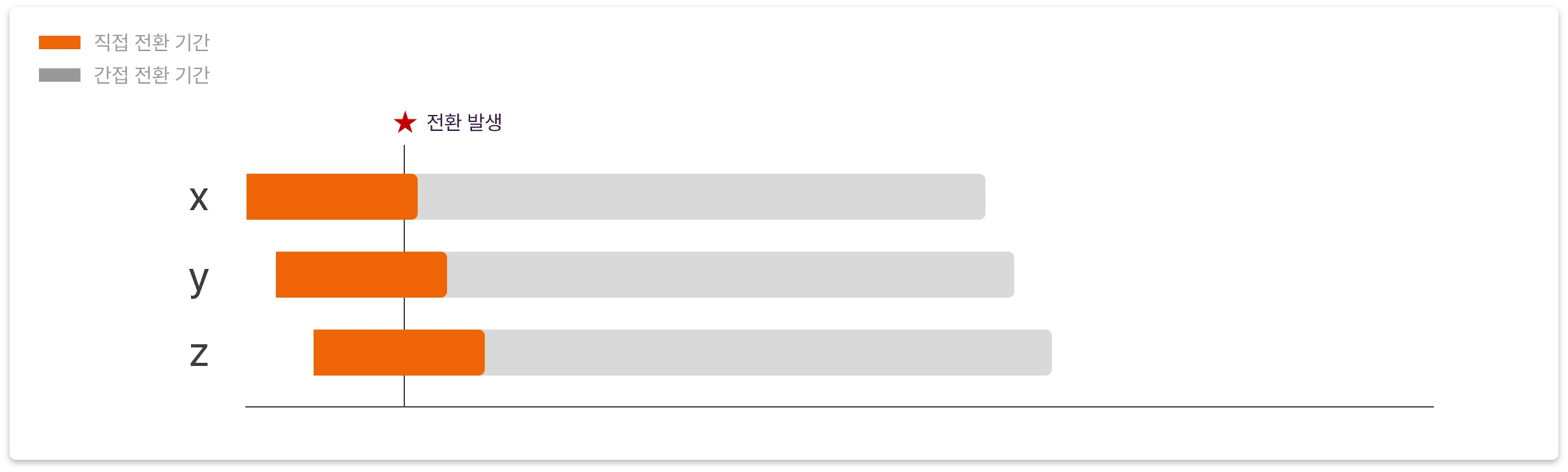 간접 전환 유저가 특정 광고를 클릭한 후 일정 기간(대체로 72시간) 이내 전환이 발생한 경우, 전환으로 측정하는 것을 말합니다.