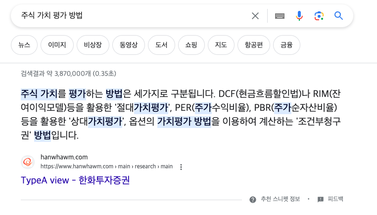 답변엔진최적화(AEO)는 간단하게 내 콘텐츠나 사이트를 검색 스니펫에 보여주는 것을 의미합니다. AEO는 현재 구글이 아니여도 네이버, 빙 등 다양한 검색 엔진에서 쉽게 확인할 수 있습니다. 간단하게 '주식 장 마감 시장' 이라고 검색하면 대부분의 검색 매체가 요약된 스니펫을 제공하고 있습니다.