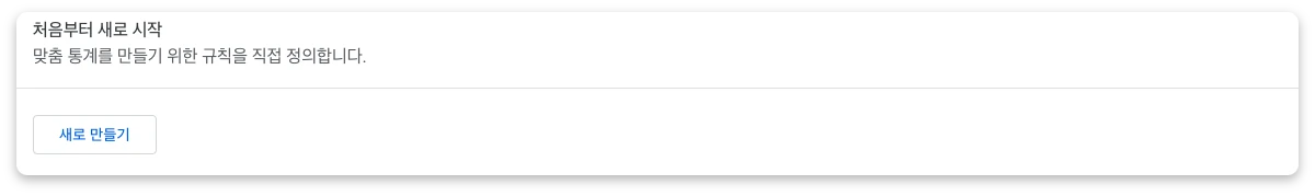 만약 추천 통계가 아닌, 직접 하나씩 설정하고 싶다면 아래있는 처음부터 새로 시작을 클릭하면 됩니다. 하지만 추천 통계의 검토 및 만들기로 조건을 설정하는 것과 크게 다르지 않습니다. 오히려 추천 통계는 측정 항목이 미리 선택되어 있어서 더 편리할 수 있습니다.