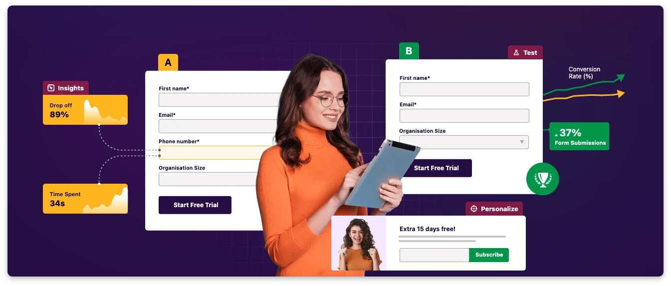 A/B 테스트 플랫폼 중 VWO는 제한적인 무료 플랜을 제공합니다. 월간 추적 사용자가 5만 명 이내라면 Starter 플랜을 이용해서 무료로 A/B 테스트를 할 수 있습니다. 그리고 VWO는 Google Optimize와 같이 시각 편집 기능이 존재합니다. 즉, 프로그래밍 지식이 없는 마케터도 A/B 테스트를 진행할 수 있죠.