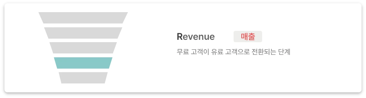 Revenue 매출 단계가 낮다면 각 구매 단계의 데이터 (이탈률, 세션 시간 등)을 체크해 볼 필요가 있습니다. 그리고 유저 인터뷰로 서비스를 구매하지 않는 이유를 확인해 보는 것이 필요하죠.