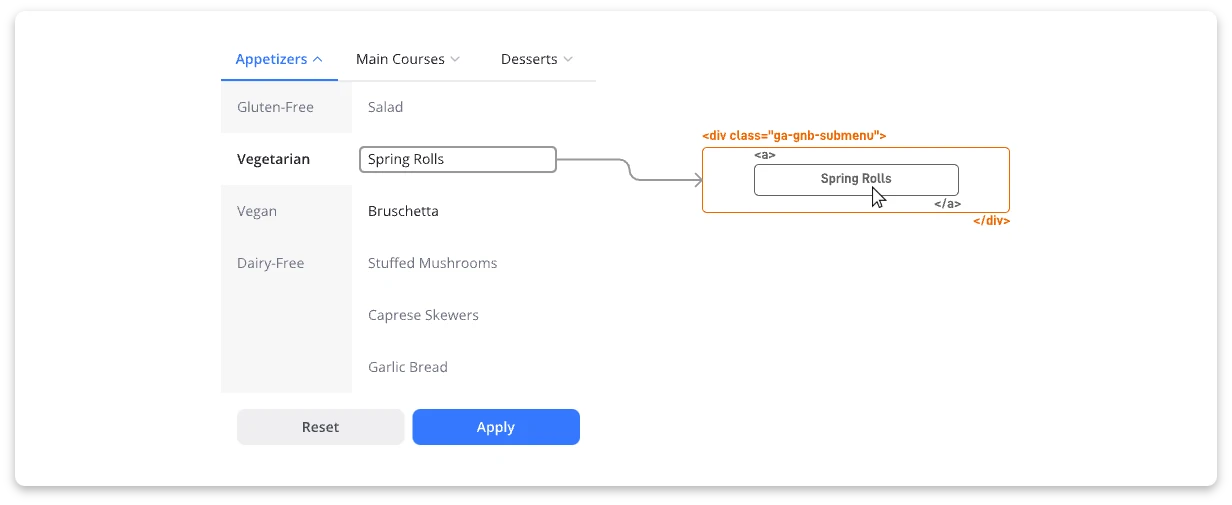 결국 가장 쉬운 방법은 text를 조건으로 이벤트 태그를 만드는 것이지만, 조금 더 안정적인 방법은 별도의 class명을 추가하는 것입니다. 웹페이지 업데이트로 내용이 변경되어도, 해당 영역의 class명은 유지되는 경우가 많기 때문이죠.