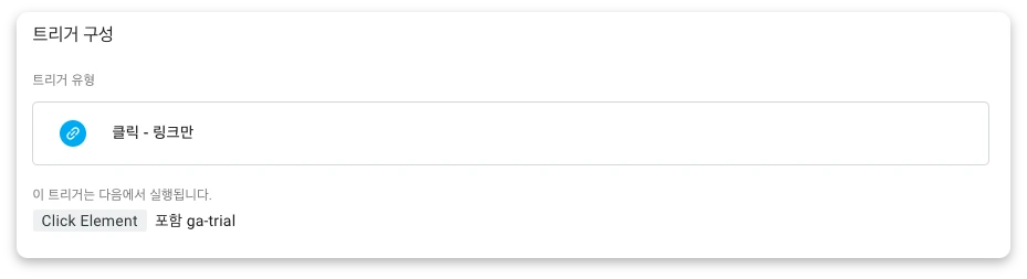 이러한 방법을 사용할 때, 단순히 click class를 트리거의 조건 항목으로 사용할 수 있습니다. 클릭한 요소의 지정한 class명이 있다면 트리거의 조건이 참 True가 되고, 이벤트가 작동하게 되죠. 하지만 하나의 문제가 발생할 수 있습니다.